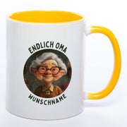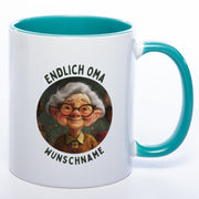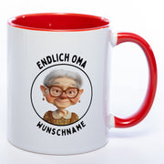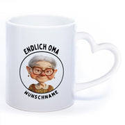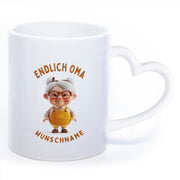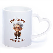 "Endlich Oma"-Tasse mit Wunschnamen - spülmaschinenfest
