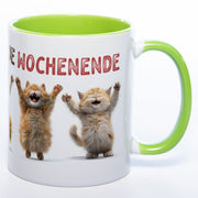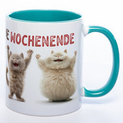 Motiv-Tasse Katzen "Hoch die Hände Wochenende" spülmaschinenfest
