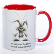 Motiv - Tasse mit Spruch und Hase: Ich hab jeden Tag Ostern. Ich such immer irgendwas.- spülmaschinenfest