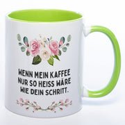 Blümchen-Tasse mit Spruch "Wenn mein Kaffee nur so heiss wie dein Schritt wäre" - Lustige Kaffeetasse spülmaschinenfest