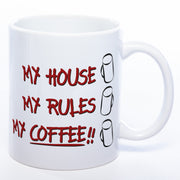 Spülmaschinenfeste Motiv-Tasse mit Spruch "My House. My Rules. My Coffee!!"