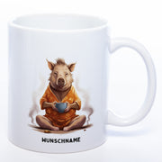 Motiv-Tasse Yogaschwein mit Wunschnamen - Teetasse StickyWorld Exclusive spülmaschinenfest