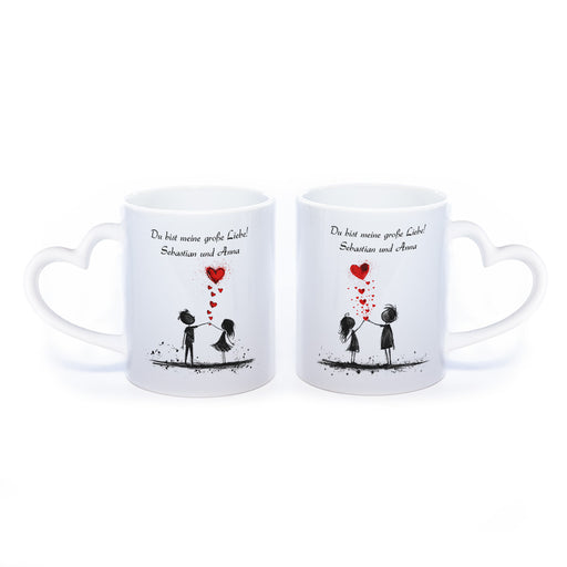 Alle gegevens bekijkenMotiv-Tasse mit Liebespaaren "Du bist meine große Liebe" und 2 Namen spülmaschinenfest