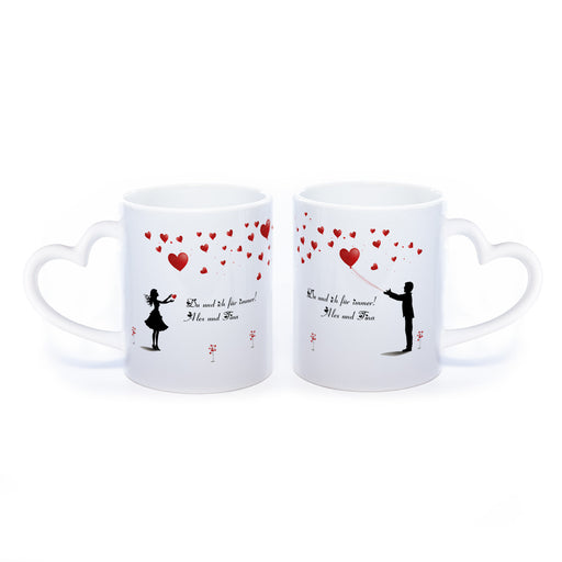 Alle gegevens bekijkenMotiv - Tasse mit Liebespaaren, Spruch und 2 Wunschnamen spülmaschinenfest