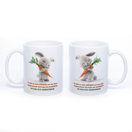Alle gegevens bekijkenMotivtasse Hase mit Möhre und Wunschnamen - süße Kaffeetasse, nicht nur zu Ostern - spülmaschinenfest