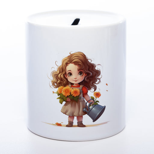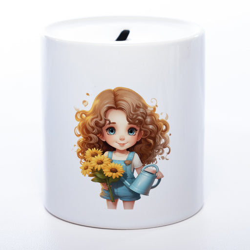 Alle gegevens bekijkenHochwertige Spardose aus Keramik mit süßem Blumenmädchenmotiv und Wunschtext | Geschenkidee