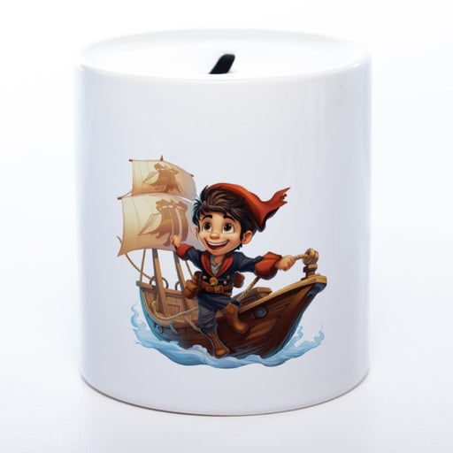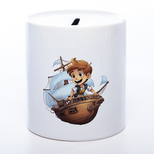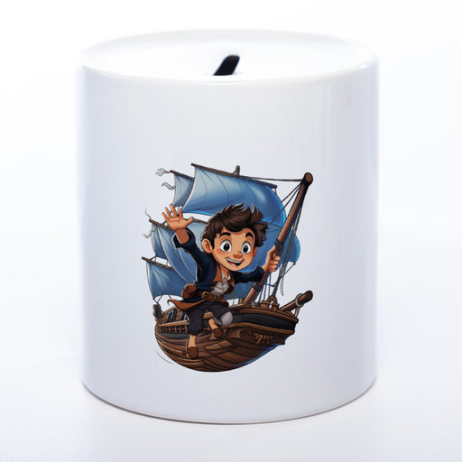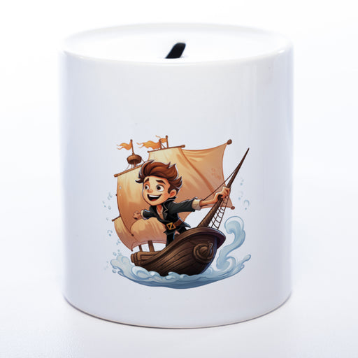 Alle gegevens bekijkenHochwertige Spardose aus Keramik mit kleinem Piraten-Kapitän Motiv 4 und Wunschtext | Geschenkidee