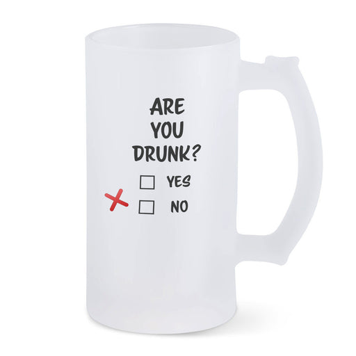 Alle gegevens bekijkenBierkrug aus satiniertem Glas mit Spruch Are you drunk?