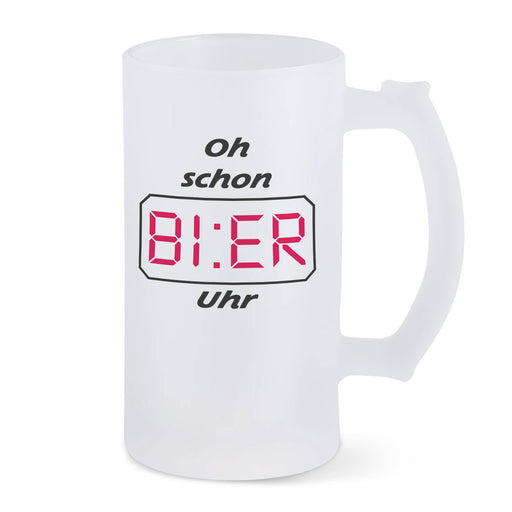 Alle gegevens bekijkenBierkrug aus satiniertem Glas mit Motiv und Spruch: Oh schon BI:ER Uhr
