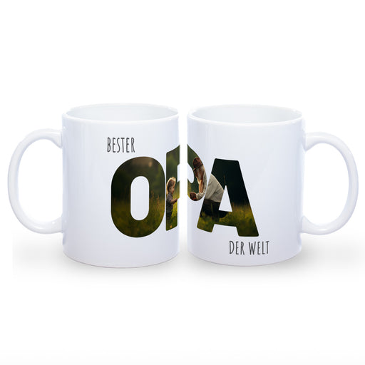 Bester Opa der Welt-Tasse Gestalte jetzt Deine personalisierte Fototasse selbst! Die hochwertige Tasse aus hochweisser Keramik lässt sich ganz einf...