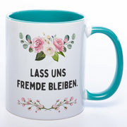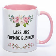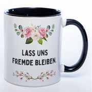 Blümchen-Tasse mit Spruch "Lass uns Fremde bleiben" spülmaschinenfest - Lustige Kaffeetasse